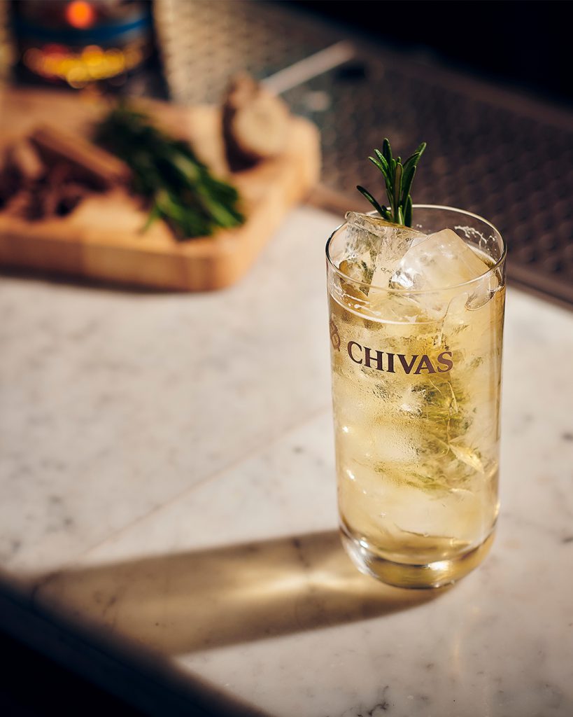 - PASO 1. Llená un vaso de trago largo con hielo (una manera de disfrutar mejor este trago refrescante) y vertí 1 parte del whisky Chivas 12.