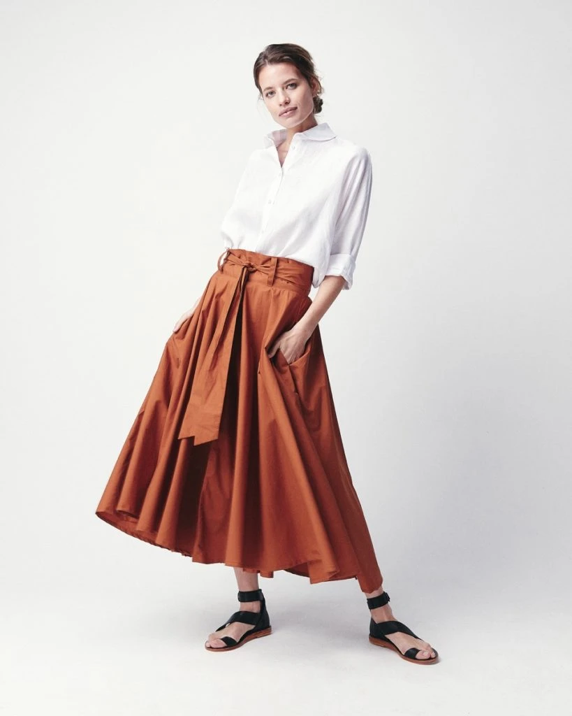 Una pollera larga de poplín es ideal para llevar en verano con chatas y un chaleco o camisa blanca.
