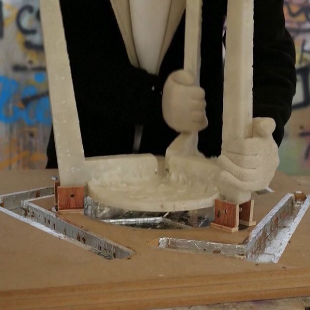 Se necesitan alrededor de 250 máscaras para formar cada pata del asiento y otras 750 para la base.