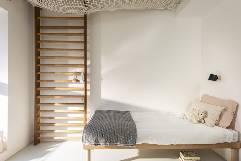 Un cuarto con estilo japandi pintado en tono "Cabras Blancas" y decorado con madera natural y tejidos suaves. Foto: gentileza beprepared/Alba,
