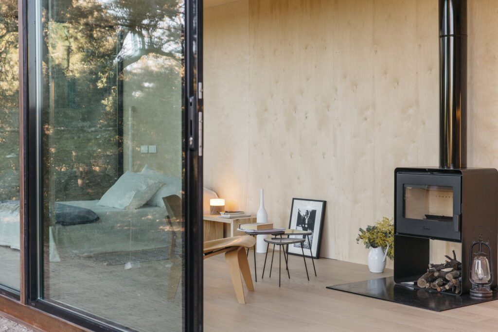Este "rudo" exterior contrasta con la gran calidez del interior, forrado completamente de madera de abedul y suelo de roble.