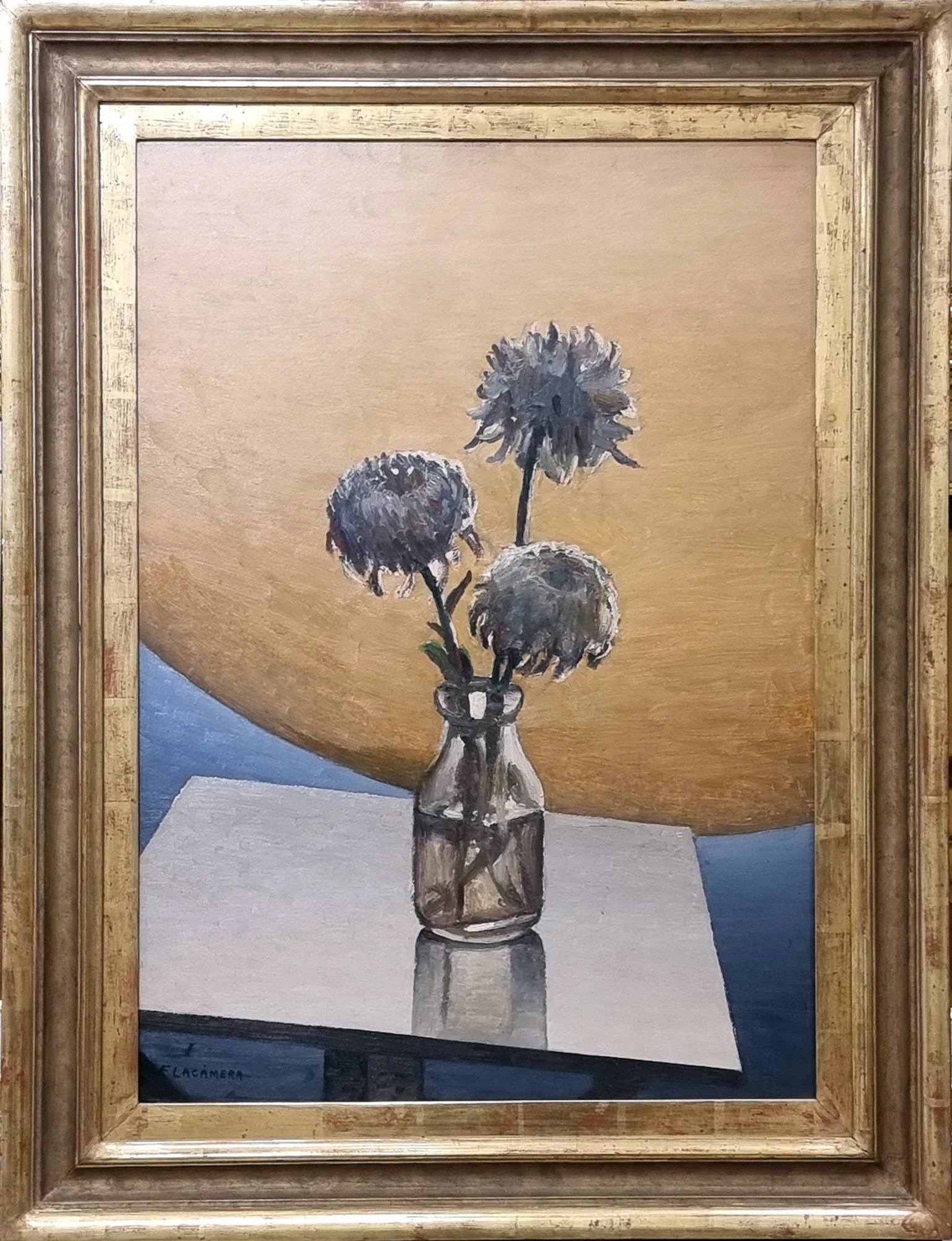 Fortunato Lacamera. Título: crisantemos. Óleo sobre cartón. Medidas: 70 x 50 cm.