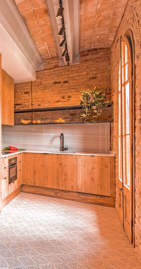 "La sorpresa fue, que al retirar el falso techo vimos que las vigas originales estaban en muy mal estado. Eso encareció el proyecto y reclamó de algo más de tiempo e inventiva", explican desde el estudio de arquitectura. En las paredes, el ladrillo visto aporta un toque entre industrial y cálido al conjunto.