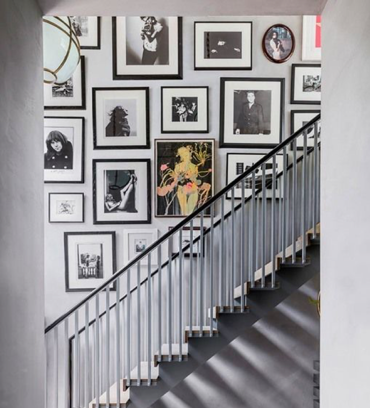 8. Una deco modelo. En la línea de decorar la escalera con cuadros, ¿qué tal hacer como la topmodel inglesa Kate Moss? Ella, junto con el estudio de arquitectura Yoo, fue la encargada de darle vida a esta escalera con obras de arte y fotos de diferentes artistas.