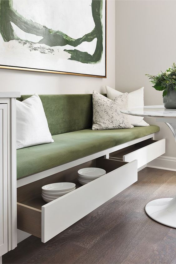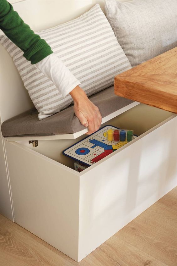 Otro mueble doble uso que recomienda la experta es un banco contra la pared. "Se aprovecha todo el lugar hasta la pared y, si además cuenta con espacio para guardar diferentes objetos, ¡mucho mejor!".
