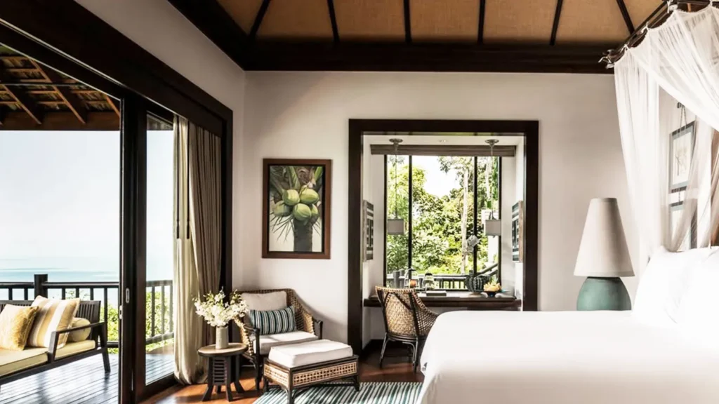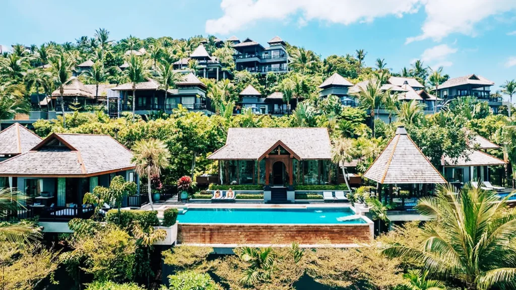 Ubicado en el extremo noroeste de Koh Samui, una de las islas más espectaculares de Tailandia, este hotel es puro lujo, literal. Sus villas están enclavadas en un acantilado con vistas panorámicas al mar, piscinas infinitas privadas, terrazas enormes y hasta un asistente personal para ocuparse de cada detalle.