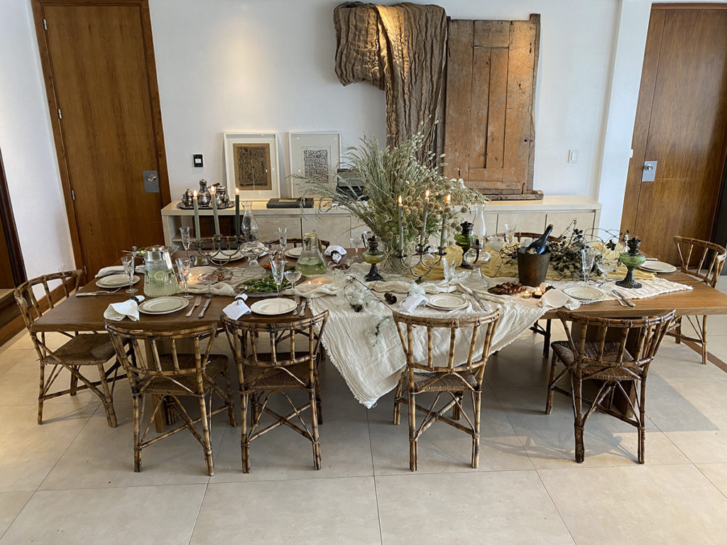 Algo más ecléctica y teatral, la mesa de Wendy Dubinicz y Monserrat Ruiz de Olano (@designlovers) propone una atmósfera sofisticada. Y lo antiguo, lo nuevo y los detalles de la naturaleza se conjugan en la mesa de interiores armada por Mercado Don Toto (@mercadodontoto).