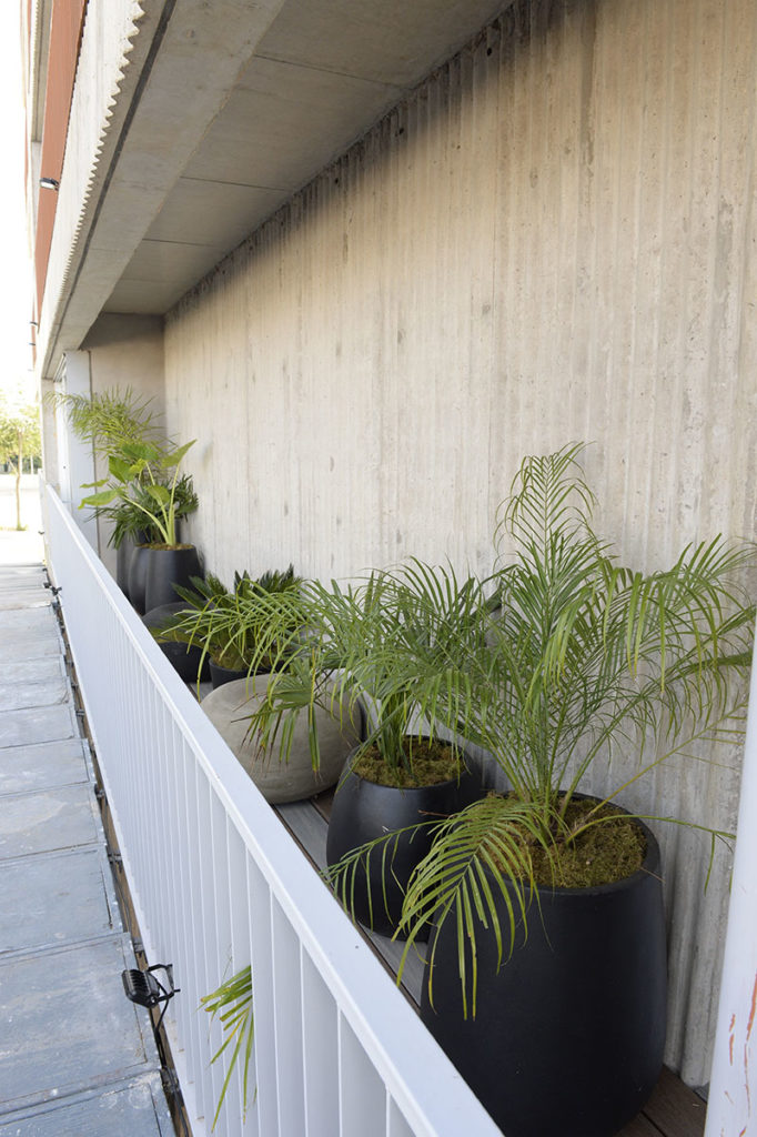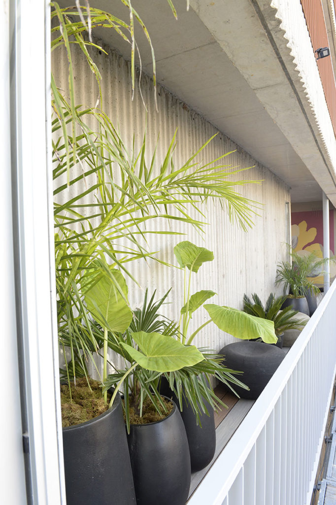 Nadares incorporó líneas curvas tanto en la macetería como en el mobiliario para que que actúe de forma disruptiva con el limitado espacio y su linealidad.