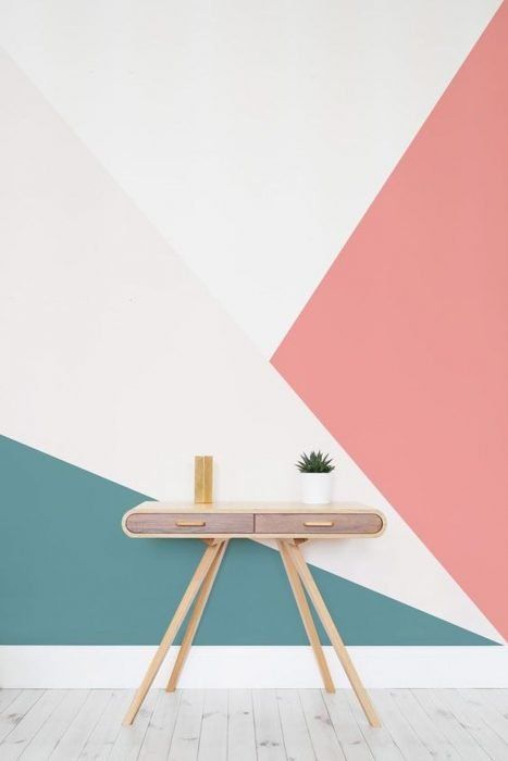 Podés apelar a un vinilo o directamente pintar la pared entera (o una puerta o rincón) siguiendo el dibujo geométrico que quieras y teniendo los materiales básicos a mano: pintura y cinta de papel.