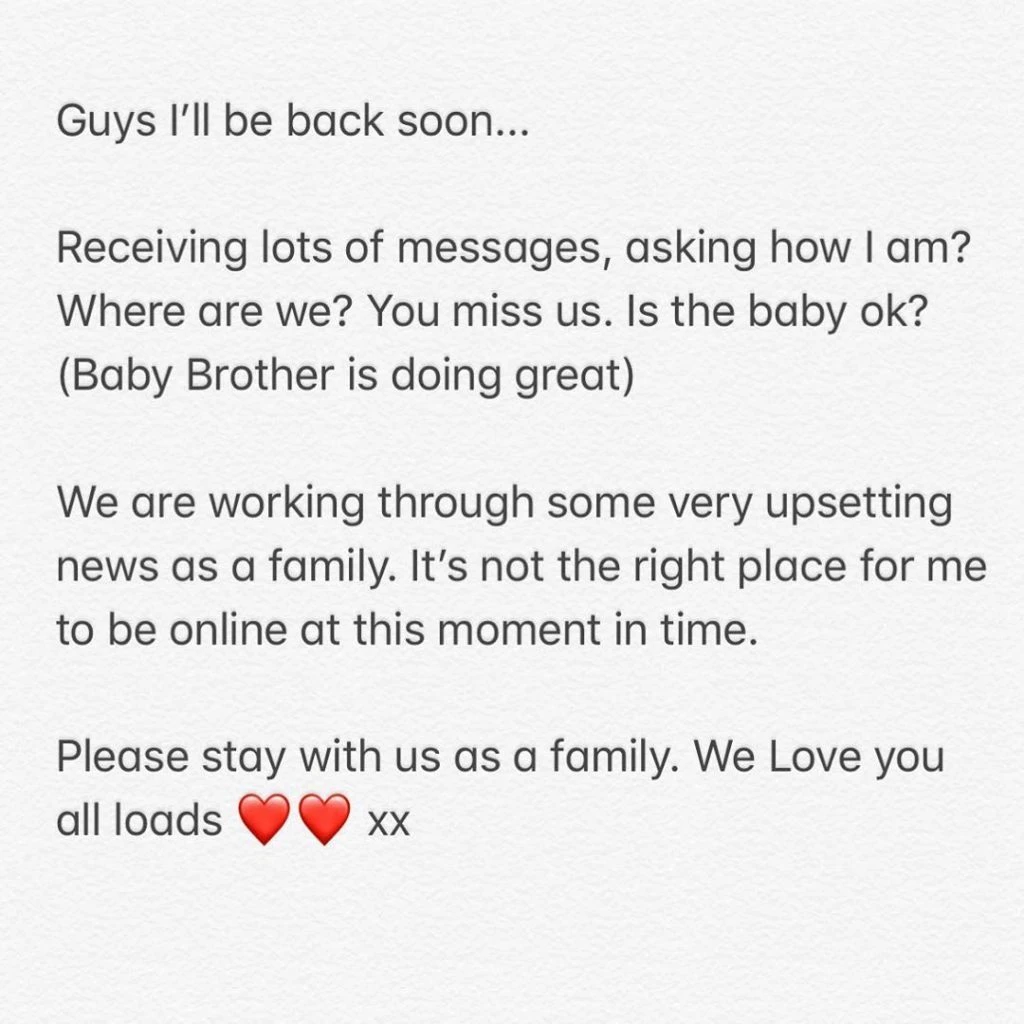 "Vamos a luchar contra esto hasta el final", dijeron. "No queremos su tristeza, solo queremos amor y positividad y juntos crearemos conciencia sobre esta terrible enfermedad y buscaremos todas las opciones de tratamiento disponibles".