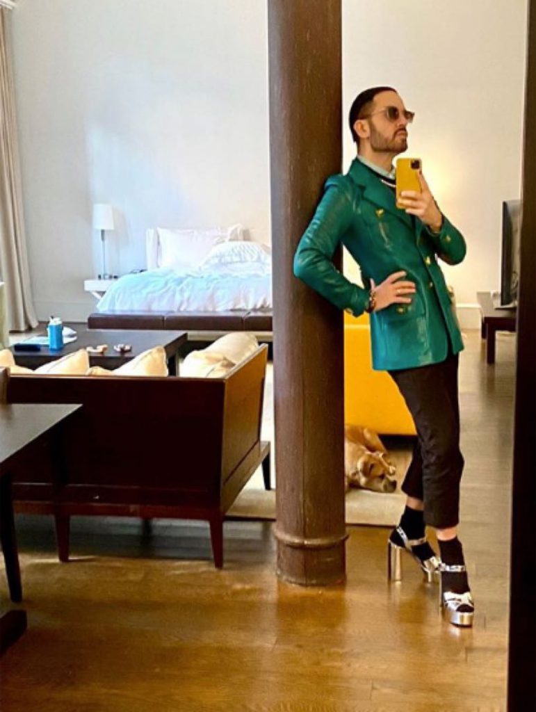 Nada de pijamas ni de ropa de entrecasa. El diseñador top pasa la cuarentena en su casa de Nueva York a su manera, y así comparte sus tips de temporada de aislamiento 2020.