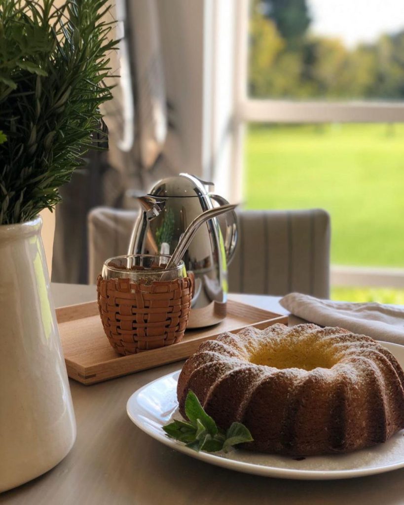 Una vez fuera del horno, la esposa de Mauricio Macri lo espolvoreó con azúcar impalpable y lo decoró con un ramito de menta. Las mandarinas al lado y la jarra blanco con hierbas, son el complemento perfecto para la foto.