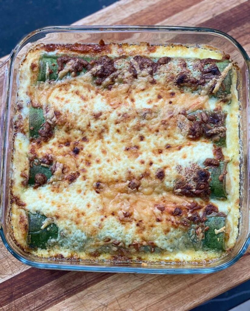 - Paso 3: Cocinar los crepes verdes en una sartén con manteca. Rellenar cada crepe en un borde y arrollar. Acomodar en una fuente para horno (enmantecada) uno al lado del otro.