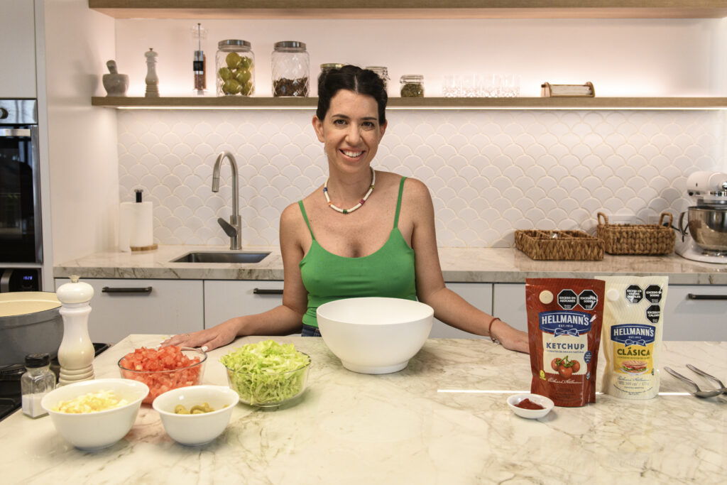 En esta oportunidad, Jordana prepara el aderezo del salpicón con Mayonesa Hellmann's, un clásico infaltable al momento de realizar este plato. Además, nos cuenta un truco que heredó de su mamá: incorpora Ketchup Hellmann's a la mezcla. Explica que no es lo mismo utilizar directamente salsa golf, porque las proporciones no son iguales. De esta forma, la mayonesa y el ketchup fusionan tradición e innovación en un clásico de la temporada de festejos.