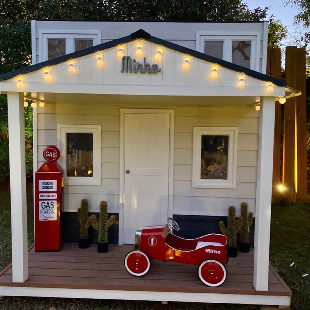 El conductor le regaló a su hijo una casa de juegos. Es oficial: Mirko ya es propietario, pequeño amo y señor de una mini mansión con estilo americano.
