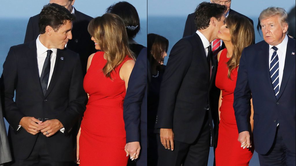 Con pasos firmes, Melania no da puntada sin hilo. Sin soltarle la mano a Donald Trump (parado a su lado, impoluto) y, a sabiendas de que los fotógrafos del mundo estaban captando cada momento, la primera dama estadounidense se lanzó sobre Trudeau con un efusivo beso. Bien coqueta.
