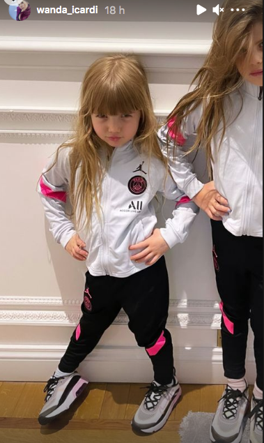 Mientras Wanda se lookeó con una camiseta del equipo y jeans, las nenas usaron equipos deportivos completos, de pantalón, campera y hasta zapatillas con los colores del PSG.