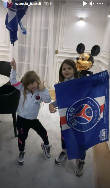 En otra de las fotos posteadas por Wanda en sus stories de Instagram se ve a Isabella y Francesca con banderas del club. Las fans más estilosas del PSG, sin duda alguna.