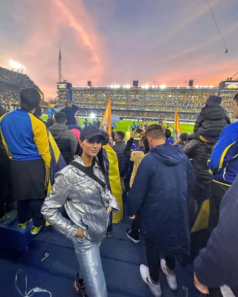 En la tarde de ayer, Zaira acudió a la cancha de Boca para asistir al partido de despedida de Juan Román Riquelme y allí brilló entre los hinchas con su total look.