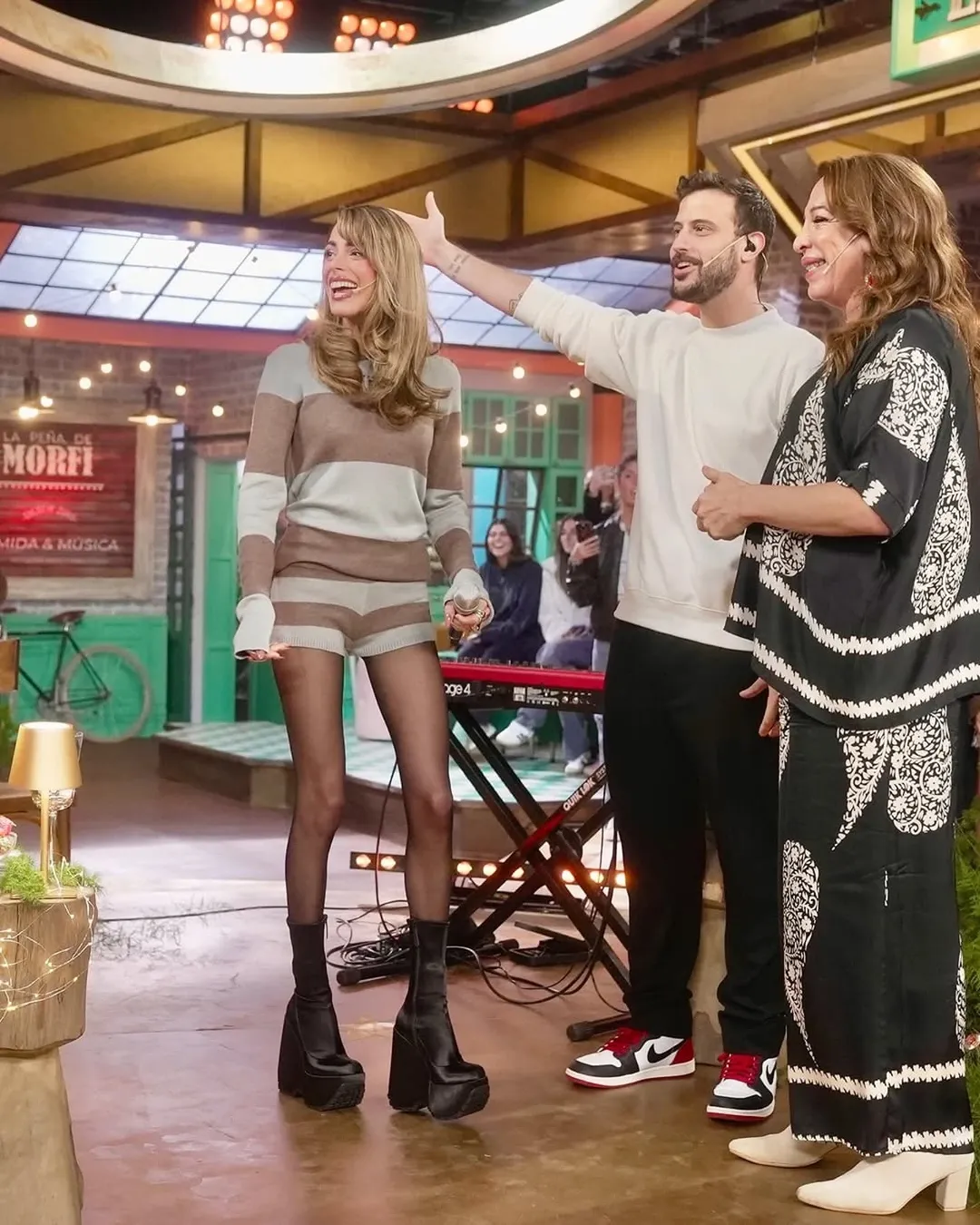 En el caso de Tini, complementó con medias negras semitransparentes y unas botas negras con plataforma cuadrada que recuerdan mucho al estilo de las muñecas Bratz. De hecho, su calzado fue lo más llamativo del look y le dio otro tipo de estilismo.