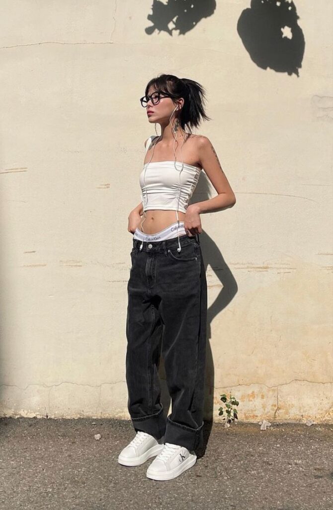 Las mini faldas, los tank tops, los jeans tiro bajo y los pantalones parachute son los ítems principales de la Acubi Aesthetic.