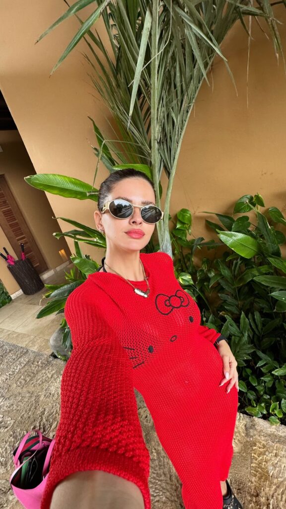 Sin embargo, el outfit que más llamó la atención fue el que usó por la tarde, sobre su bikini. En ese caso, la actriz usó un vestido de hilo, tejido -tendencia absoluta de la temporada-, en color rojo.