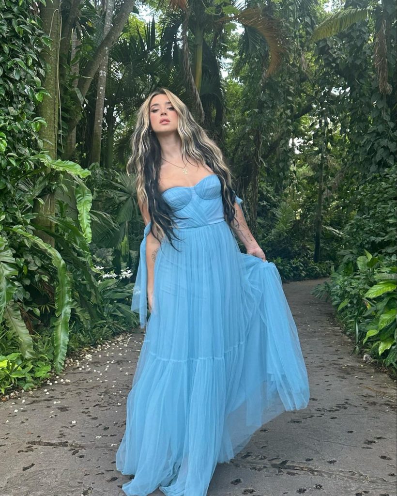 La cantante Aitana, quien acudió acompañada de Sebastián Yatra, llevó un un vestido negro de Yves Saint Laurent, que se caracterizaba por el drapeado y una gran flor morada. Mientras que Natti Natasha y Anitta también lucieron piezas total blacks, al contrario de Becky G que usó un vestido azul eléctrico con cuello halter y espalda descubierta.