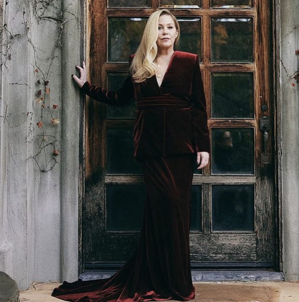 Christina Applegate eligió un diseño de terciopelo bordo de Christian Siriano.