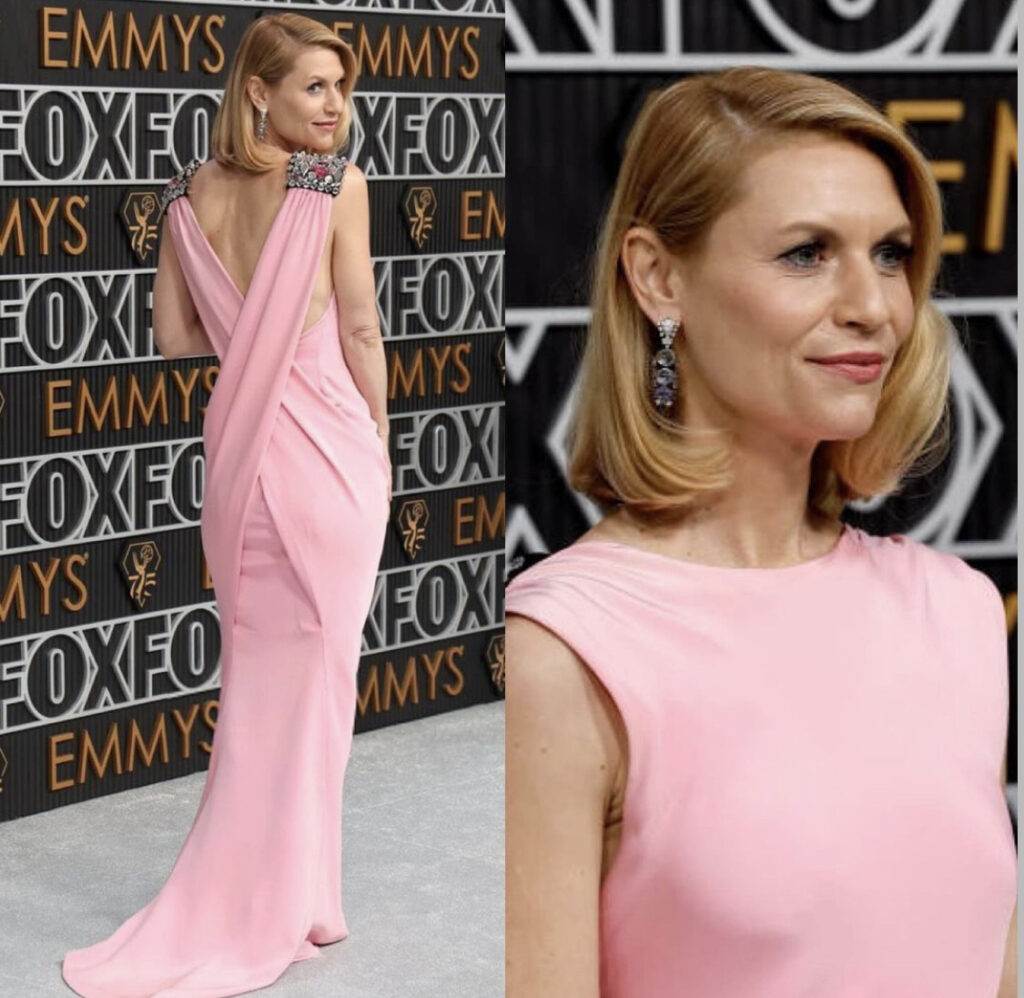 La actriz Claire Danes eligió un vestido vintage de Balmain.