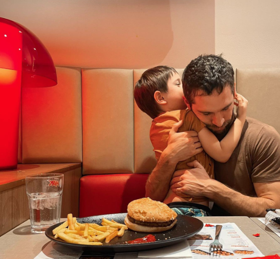 "Un hijo sin duda nos lleva a repensarnos todo el tiempo, a ver qué cosas estamos haciendo bien o mal. Son esponjas, repiten todo. Es muy divertido y muy desgastante también, no vamos a romantizar todo. Cuando lo dejo con la madre, respiro y desconecto el teléfono. No quiero hablar con nadie porque él no para de hablar y de inventar cosas. Nos divertimos, peleamos y gritamos", contó.