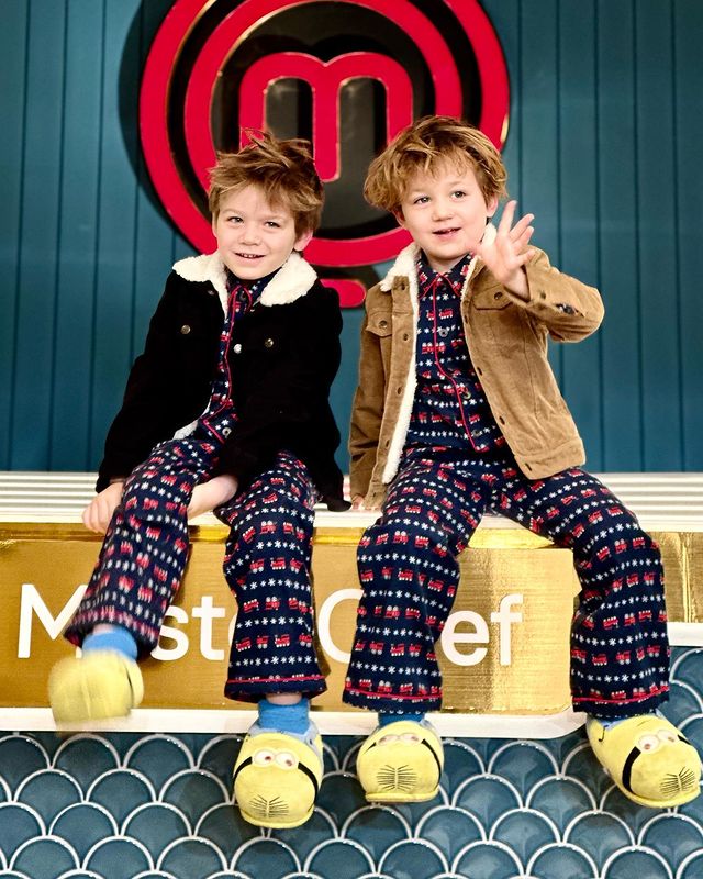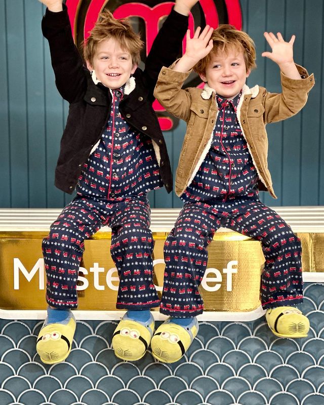 En un reciente posteo, Martitegui compartió una serie de tiernas postales donde se los ve a Lautaro y Lorenzo en el estudio de Telefe luciendo pijamas y camperas de corderoy. "Visitas", escribió el chef.