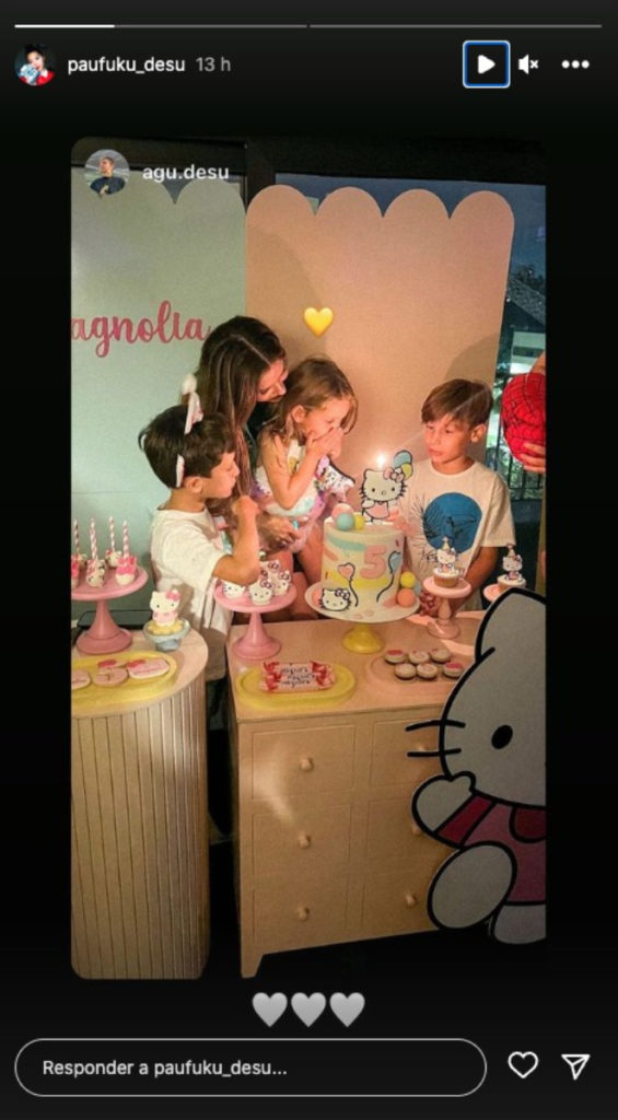 Magnolia, la hija de la China Suárez y Benjamín Vicuña, cumplió 5 años. Para homenajearla en su día, los actores realizaron el festejo en un salón con muchos juegos y con la decoración del personaje de Kitty que la pequeña deseaba.