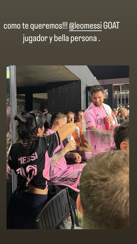 "Tan amable y generoso con su energía. Gracias por esta experiencia que nunca olvidaré", "Cómo te queremos GOAT, jugador y bella persona", fueron las palabras de Camila, súper emocionada por haber podido ver en vivo a Messi, quien pudo intercambiar unas palabras con la cantante.