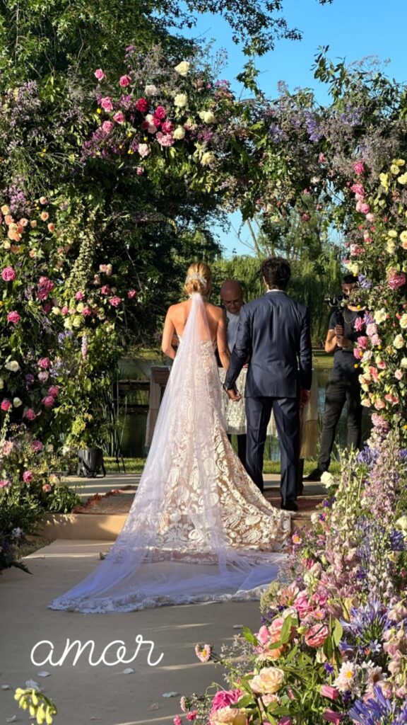 La feliz noticia sirvió además para sellar la reconciliación de Nicole con su hija mayor, Indiana Cubero, presente en la boda junto a sus hermanas Allegra y Sienna. Las chicas estaban hermosas vestidas por Laurencio Adot, tal como su mamá, que llevó un diseño nupcial súper romántico de corte sirena, con escote halter y cola, de colores nude y blanco, con sutiles transparencias.