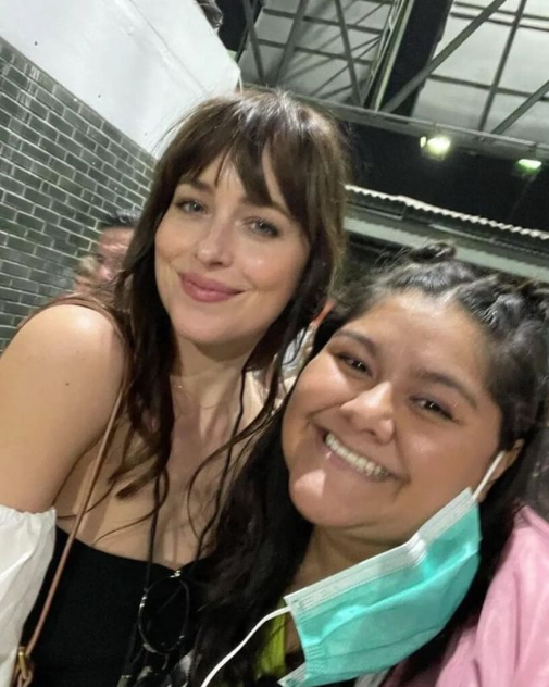 “¡Qué locura! Con @dakotajohnson afuera del restaurant Pujol”, escribió una fanática en su cuenta de Instagram, pues la protagonista de 50 Sombras de Grey accedió a sacarse una fotografía con ella. También fue captada en la terraza del hotel Four Seassons y en diversos conciertos de Coldplay en México.