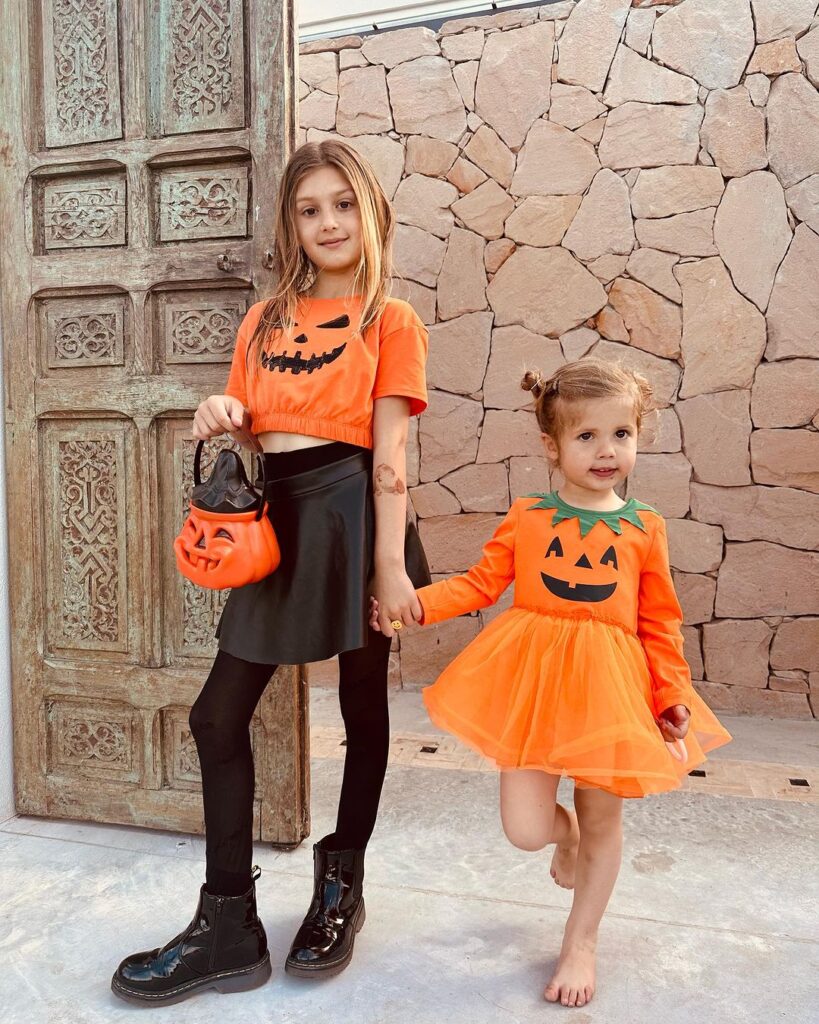 Las nenas llevaron disfraces de calabaza, cada una dentro de su propio estilo.