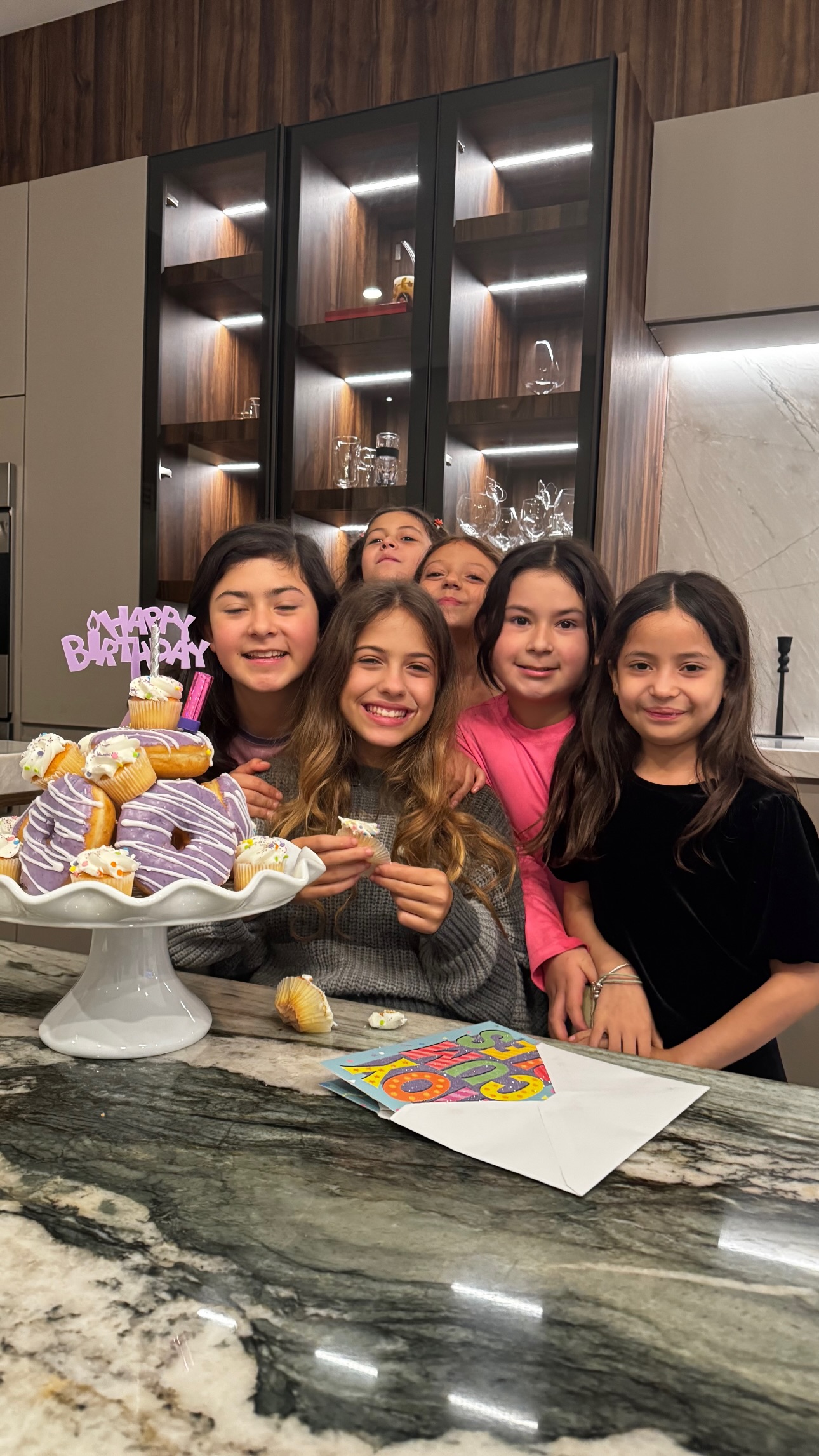 Horas más tarde, tuvo su festejo con sus amigas mexicanas y una torta muy original: hecha de donas glaseadas. También hubo un segundo pastel con una tentadora cobertura de chocolate y chips de colores.