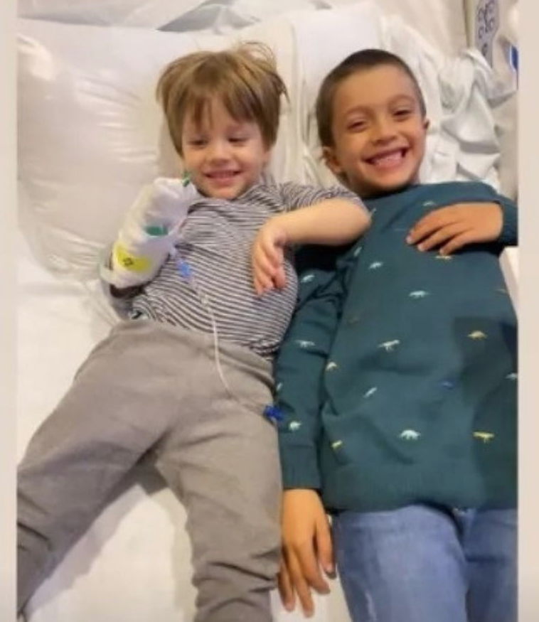 Luego mostró una imagen de su hijo que, a pesar de tener una vía en su brazo, lucía de buen humor. En otra de las fotos publicadas, el pequeño aparece sonriendo junto a su hermano mayor, Ramón.