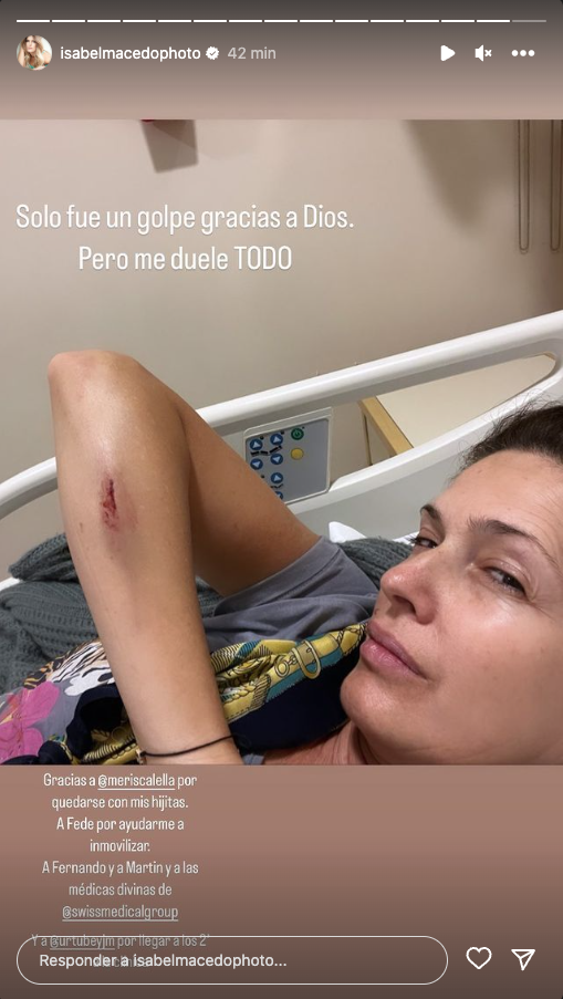Isabel Macedo compartió imágenes en su cuenta de Instagram que preocuparon a sus seguidores. La esposa de Juan Manuel Urtubey tuvo que ser atendida de urgencia en una clínica de Salta, donde vive, luego de sufrir un accidente doméstico.
