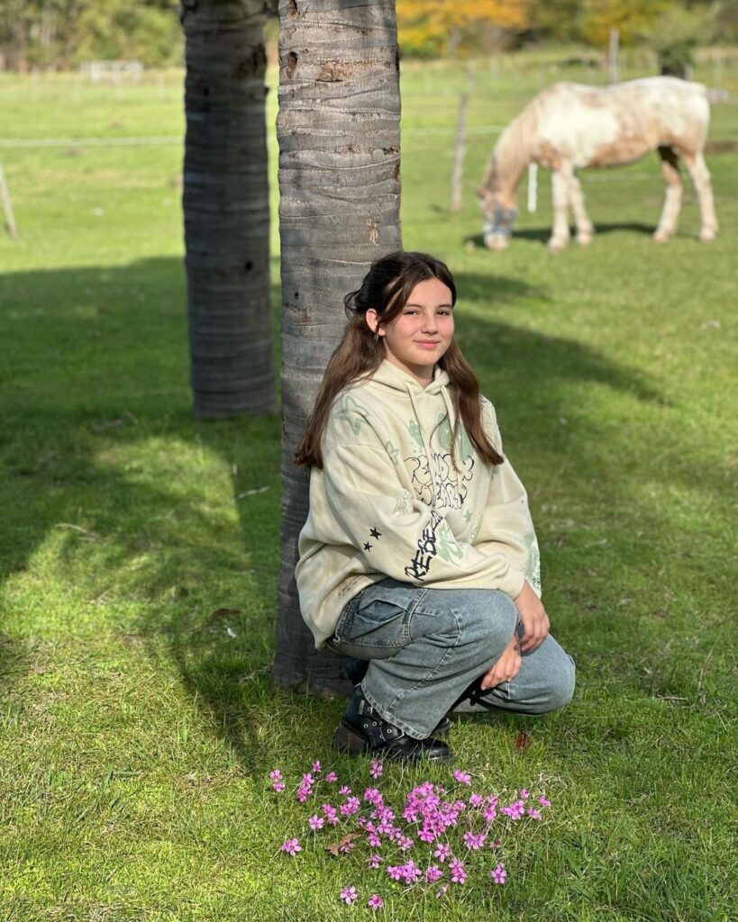 Las chicas, de 13 y 9 años, posaron en distintos sectores del establecimiento donde Nicole alberga perros y caballos restacados además de otros animales de granja como gallinas y pavos.