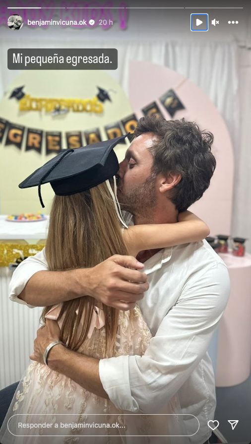 Si bien no compartieron fotos estando juntos en el colegio donde la pequeña recibió su diploma, tanto Eugenia como el actor chileno subieron imágenes del emotivo momento a sus Historias de Instagram, siempre posando con la niña.