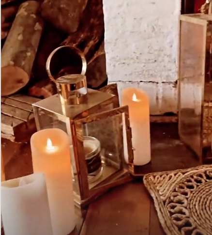 Comenzó por poner muchas velas y sumar canastos con piñas (recolectadas en los alrededores por sus hijas), además de una alfombra de fibra y varios fanales de vidrio.