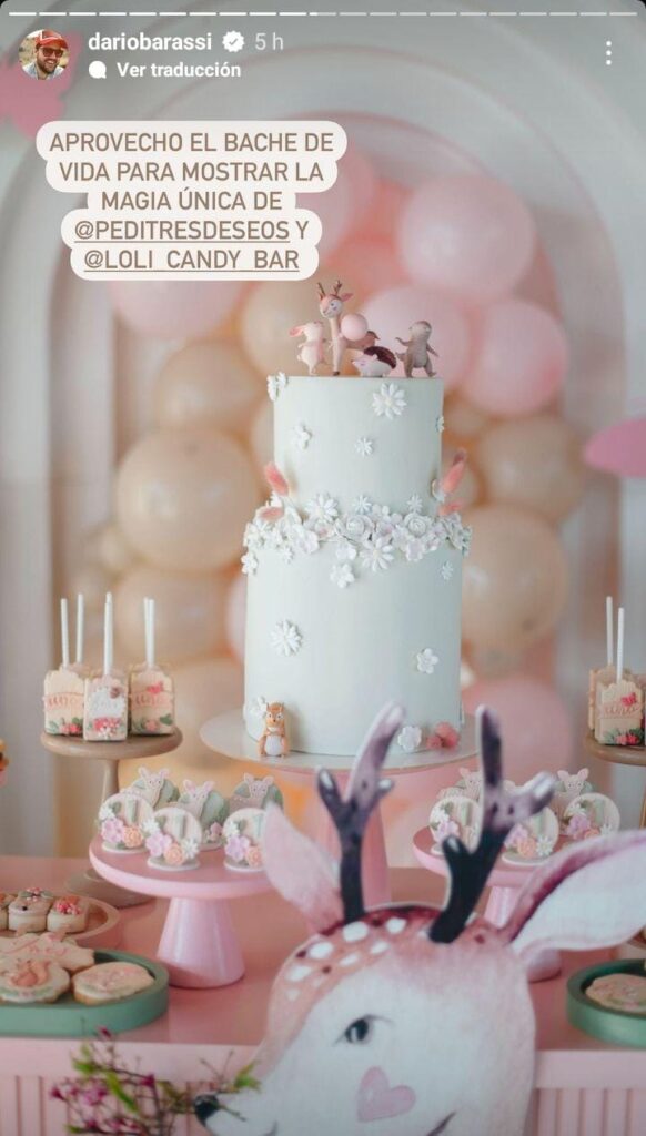 Este fin de semana, el conductor Darío Barassi y su esposa Lucía Gómez Centurión compartieron la celebración por el primer añito de Inés, su segunda hija. A través de las redes sociales, publicaron las fotografías que mostraron cada detalle de esta fiesta, que se realizó con una temática de animalitos del bosque.