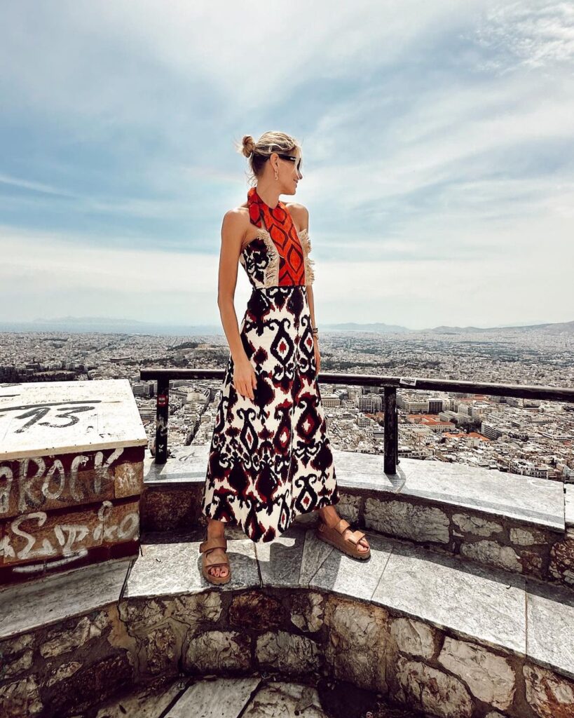 "¡Que haya luz! Dijo la Libertad, y como el amanecer desde el mar, Atenas se levantó!", expresó la modelo por medio de sus redes sociales desde la Acrópolis de Atenas, considerada como la más representativa de las acrópolis griegas.