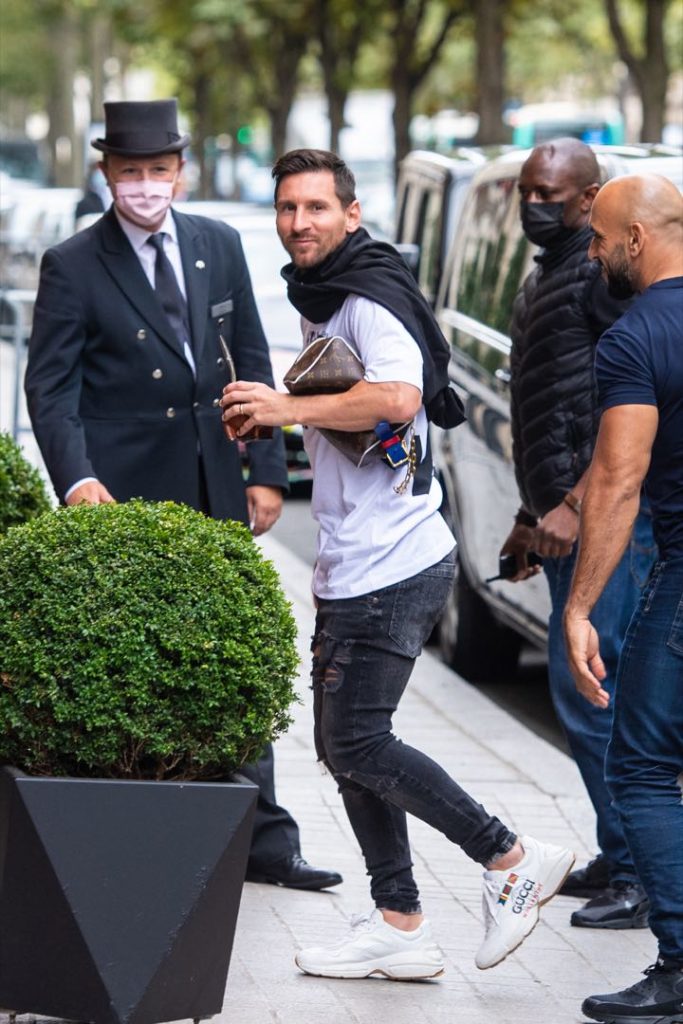 En tanto que Lionel prefirió jeans gastados negros y remera blanca, más calzado deportivo al tono y buzo oscuro sobre los hombros.