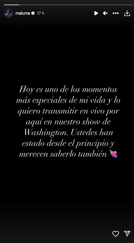 "Hoy es uno de los momentos más especiales de mi vida y lo quiero transmitir en vivo. Ustedes han estado desde el principio y merecen saberlo también", publicó el artista en sus redes sociales, segundos antes de publicar el vídeo con el que anunció que va a ser padre por primera vez.