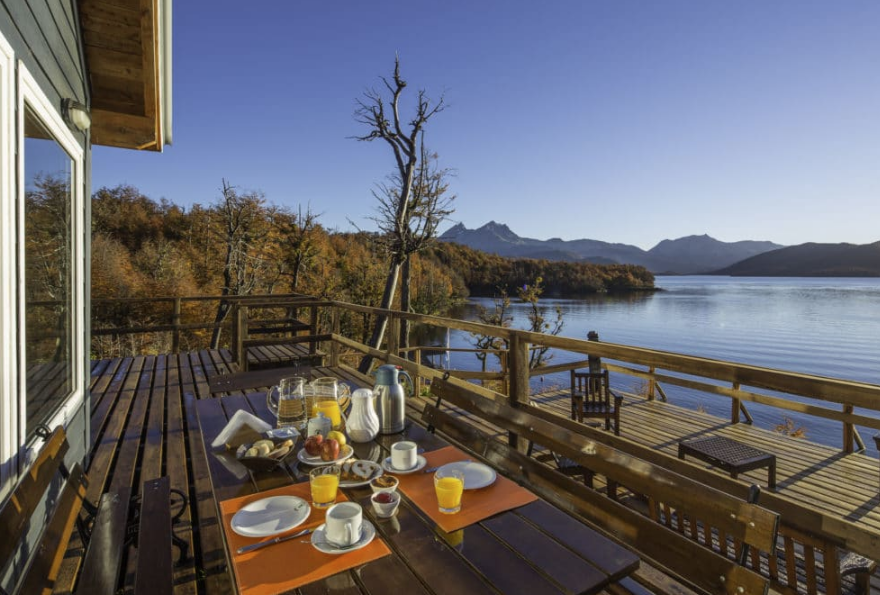 "Accesible sólo a través de una embarcación, Bahía Arenal reposa sobre la orilla del lago La Plata, en Chubut. Refugio de pescadores, senderos de naturaleza envolvente, y la calma de la esencia más pura de la Patagonia", se puede leer en el portal del exclusivo resort.