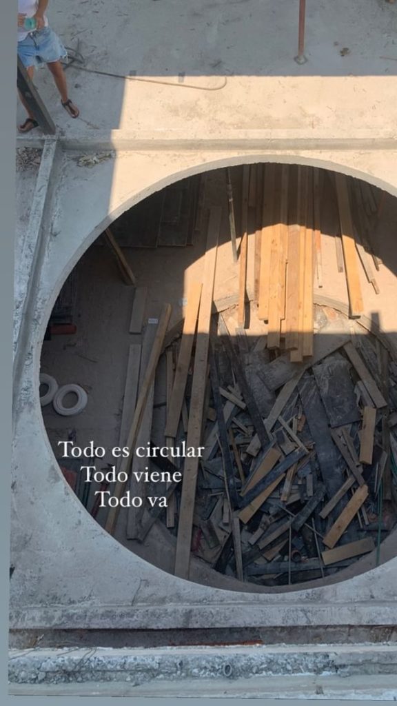 Goldenhorn, quien es especialista en arquitectura sustentable, volvió a mencionar en su posteo reciente lo que viene afirmando desde octubre de 2021, cuando comenzó la construcción de la propiedad. "Todo es circular, todo viene, todo va", escribió en otra imagen, donde se ve el particular diseño redondo que unirá las tres plantas de la casa. En esa foto, se percibe a Juana mirando este detalle que hará de su casa un hogar muy particular.