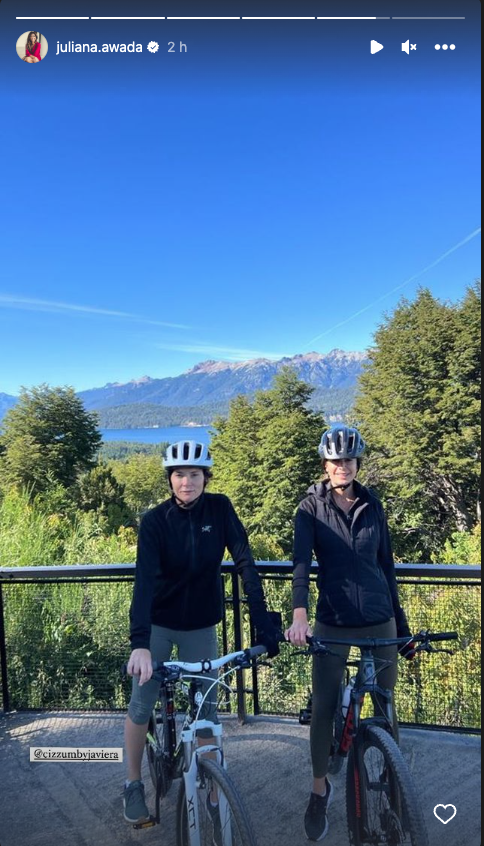 El pasatiempo que ha elegido en este viaje al sur, donde recaló después de pasar una semana en Qatar viendo el Mundial, es el ciclismo. "¡Bicicleteada al Cerro Bayo! ¡Fue un desafío, pero feliz de haberlo logrado!", escribió la esposa de Mauricio Macri en una imagen publicada en sus Historias de Instagram, donde se la ve junto a dos amigos, portando casco protector de ciclista.