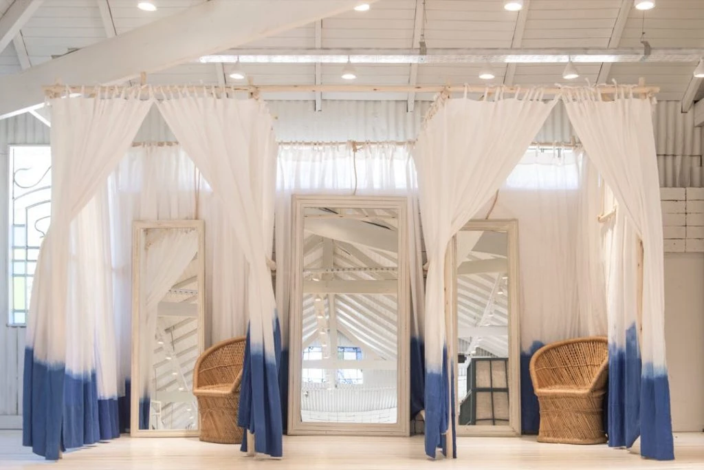 Maderas lavadas y con perfume a eucaliptos, géneros etéreos, azules añiles, fondos blancos. En el nuevo pop up store de Blue Sheep en el complejo La Aldea, de Pilar, hay una fina sintonía que sabe a playa y relax.